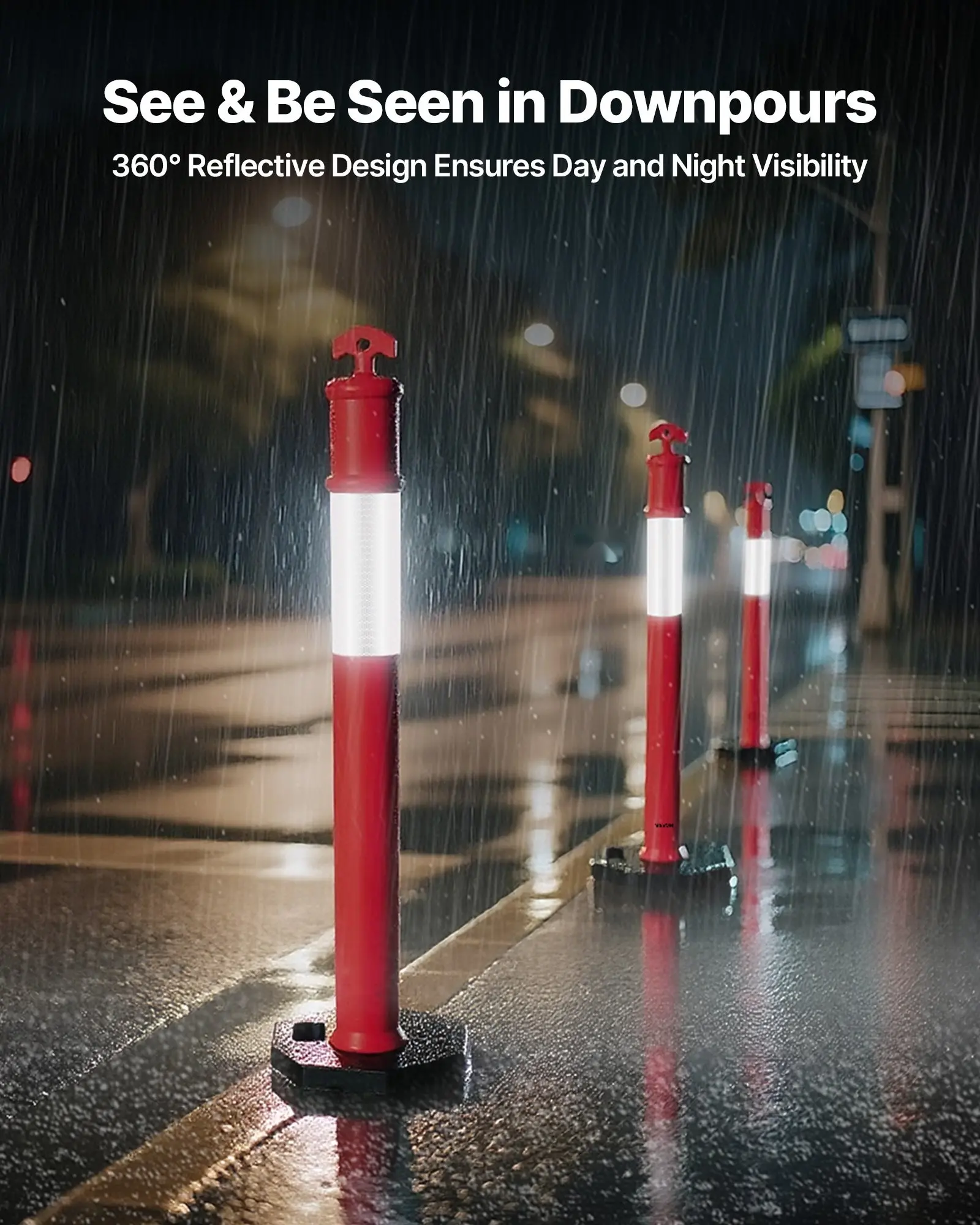 ·High Visibility: Featuring a high-intensity 360° reflective strips, the traffic delineator posts ensure high visibility even in low light, foggy conditions, or strong glare. It allows pedestrians, vehicles, and construction workers to identify the posts promptly, enhancing safety during outdoor work or traffic diversion