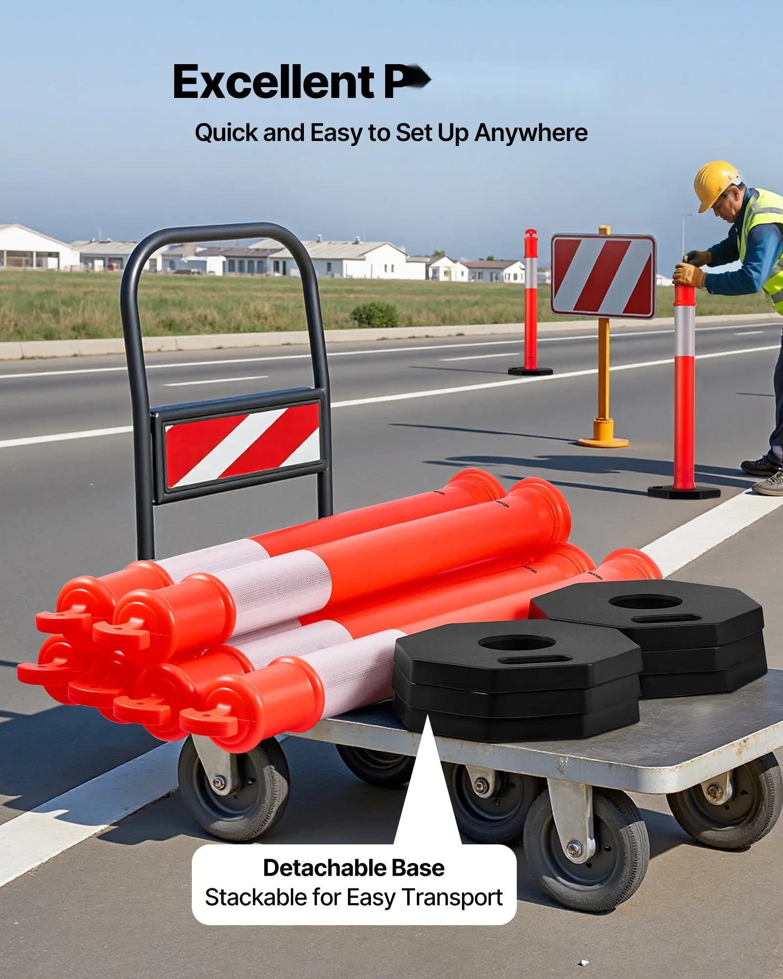 ·Flexible and Portable: Our traffic delineator features an arrow-shaped top and a portable base design, making them easy to transport and deploy. The octagonal rubber base is heavy enough to maintain stability, even if accidentally knocked over, ensuring reliable performance