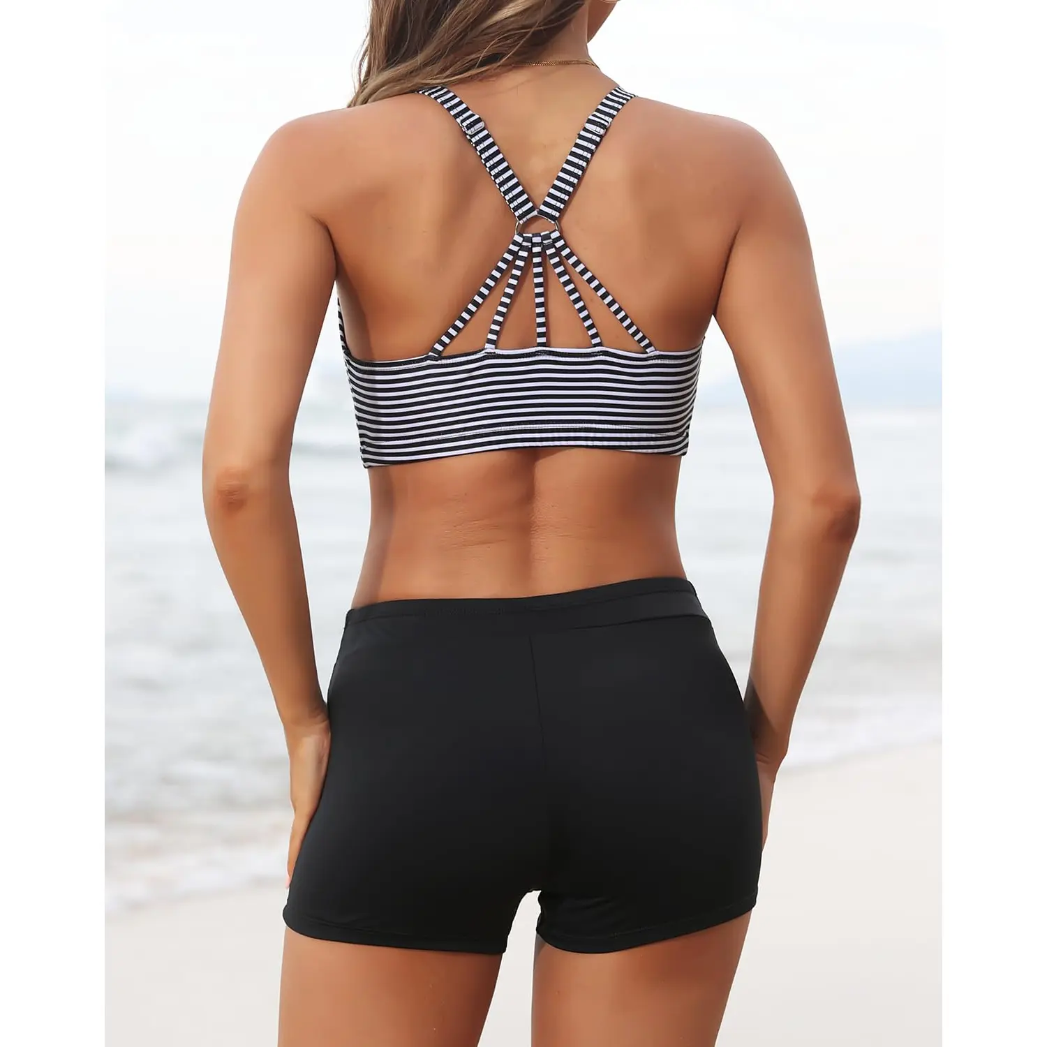 ·Three Piece Tankini Swimsuit: Our swimsuit set includes a tank top, sports bra, and boy shorts. You have the flexibility to wear it as a cute tankini or simply as a single-piece swim bra top matched with shorts.