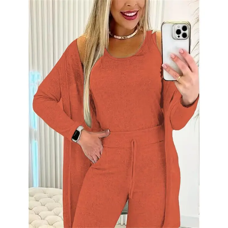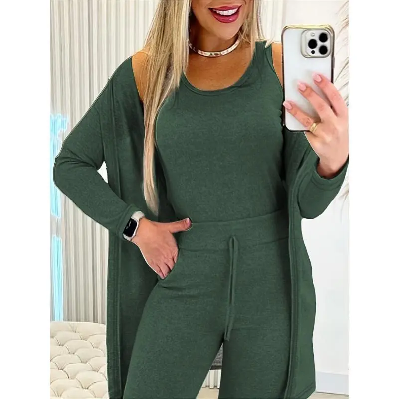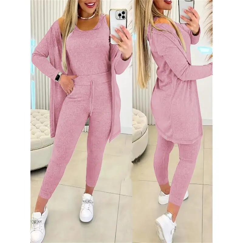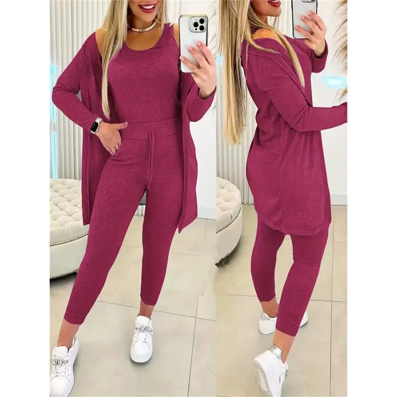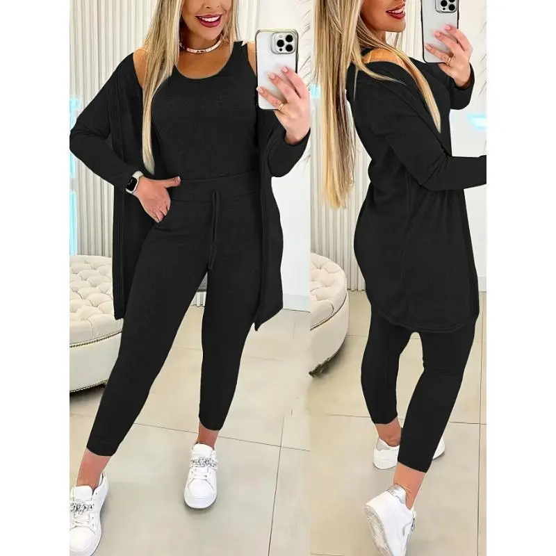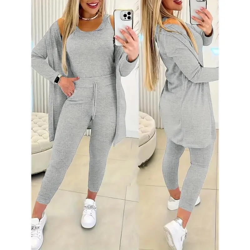 Women's 3-Piece Casual Sports Suit - Crew Neck Vest, Long-Sleeved Cardigan, Sweatpants