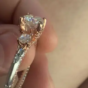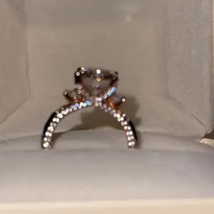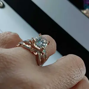 This ring is absolutely stunning! The only reason I didn’t give it 5 stars is because it’s set in rose gold. Only buy yellow gold. But I’m keeping it because it’s so beautiful. Also they sent a free, beautiful band with it.