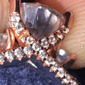 Does not have silver stamp on ring. Rose gold part looks pink pink, not rose gold. If you are selling something as 925 silver there should be a visible stamp on it for Authenticity. Don’t spend money on this if you don’t want a cheap looking ring.