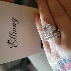 Absolutely beautiful!! I love this ring set! For it to be cubic zirconia, it looks so real. It’s got a lot of shine & the set is perfect size. Not to big or lose. Plus I love how they send a ring sizer/adjuster with the rings along with a cute gift bag, cleaning cloth & packaging was great!!