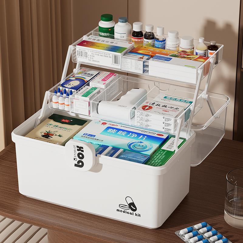 [Three-Layer Large Capacity Design] The 2025 new medicine box adopts a three-layer design, making it easy to store medications, ointments, bottled drugs, etc. Three-Tier Divider Quickly Find Medication (Size: 13.38*7.28*9.44 Inches)