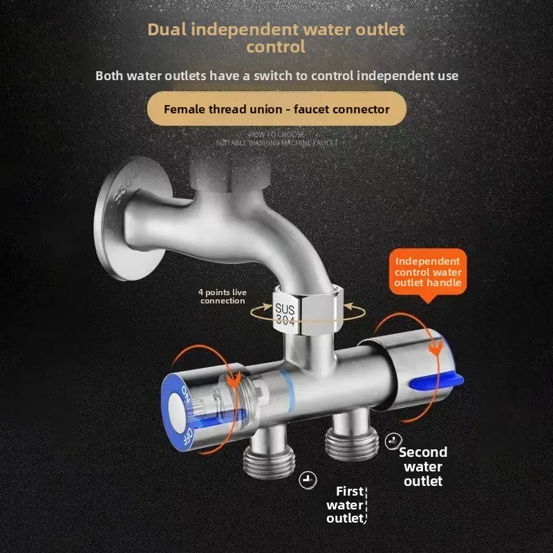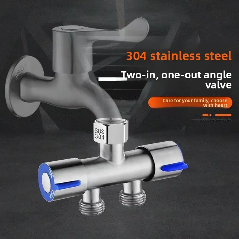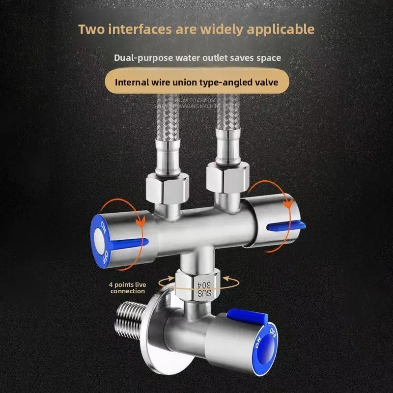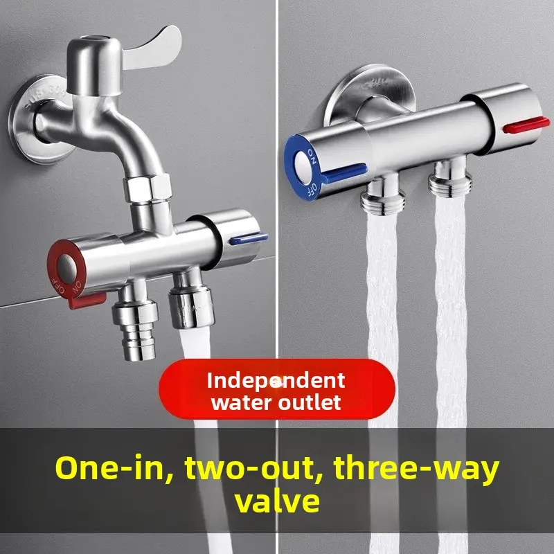 Household tap water faucet one inlet two outlets three-way water splitter, 4-point universal interface double-headed diverter valve, garden irrigation hose adapter labor-saving accessory