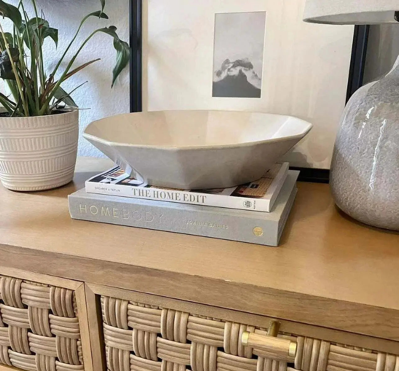This ceramic bowl is versatile and can be used in various settings. Place it on the tabletop and stack books, vases, or other items to add beauty and style. Bring striking style to your living room decor with this unique bowl from Threshold.