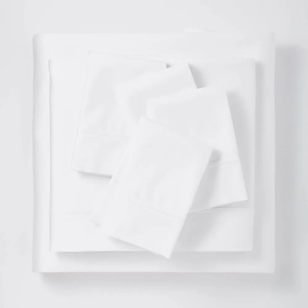 Keep yourself wrapped in cool, ultra-soft comfort night after night with the 800 Thread Count Solid Sheet Set from Threshold. Crafted from 100% cotton fabric for breathability and long-lasting use, this premium sheet set features a 800 thread count construction in a sateen finish for a luxurious feel you'll love relaxing into. The sheets fit mattresses up to 18 inches in depth and the pillowcases slip onto standard size pillows for easy integration into your bedding collection. Plus, the sheet set comes in solid white for a crisp, tidy look that blends beautifully with any decor scheme. Add this sheet set to your bedding ensemble to elevate your sleeping experience.