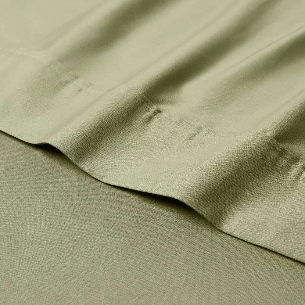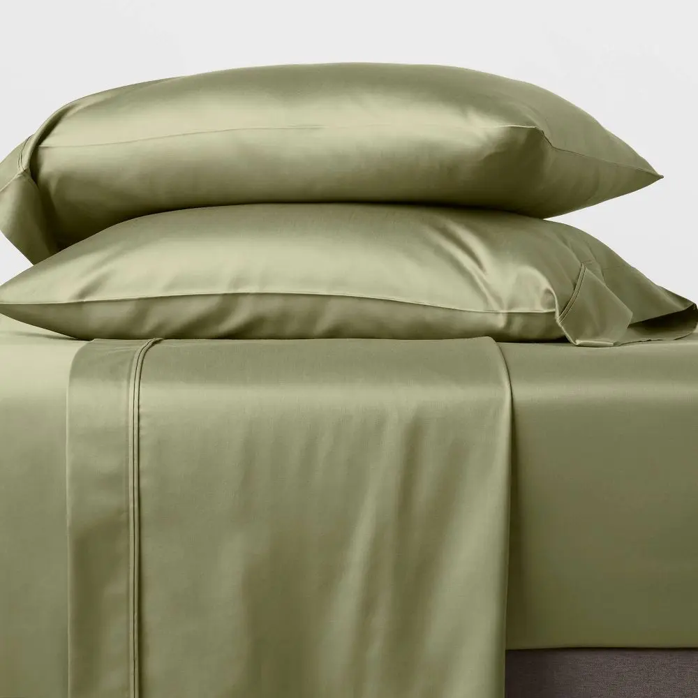 Give your bed a new look and feel with a 400-Thread Count Solid Performance Sheet Set from Threshold. Cut from 100% cotton fabric with a thread count of 400 and a sateen finish, this bedding set creates a perfectly luxurious sleeping space, and the solid-color design mixes well with a wide variety of styles for easy integration into your bedding ensemble. Wrinkle-, pill- and shrink-resistant construction keeps these sheets looking their best, while top and bottom labels make placement a breeze. Simply pair with your choice of comforter or quilt and a bank of pillows for a bedding upgrade that will have you counting the minutes until bedtime.