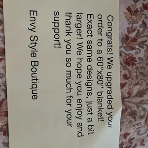 love these mystery blankets can't stop ordering them this makes my fourth one there way bigger than i expected and they come in so many different ones the quality is amazing definitely recommend you can't go wrong with this blanket for yourself or a gift!🙌🏼