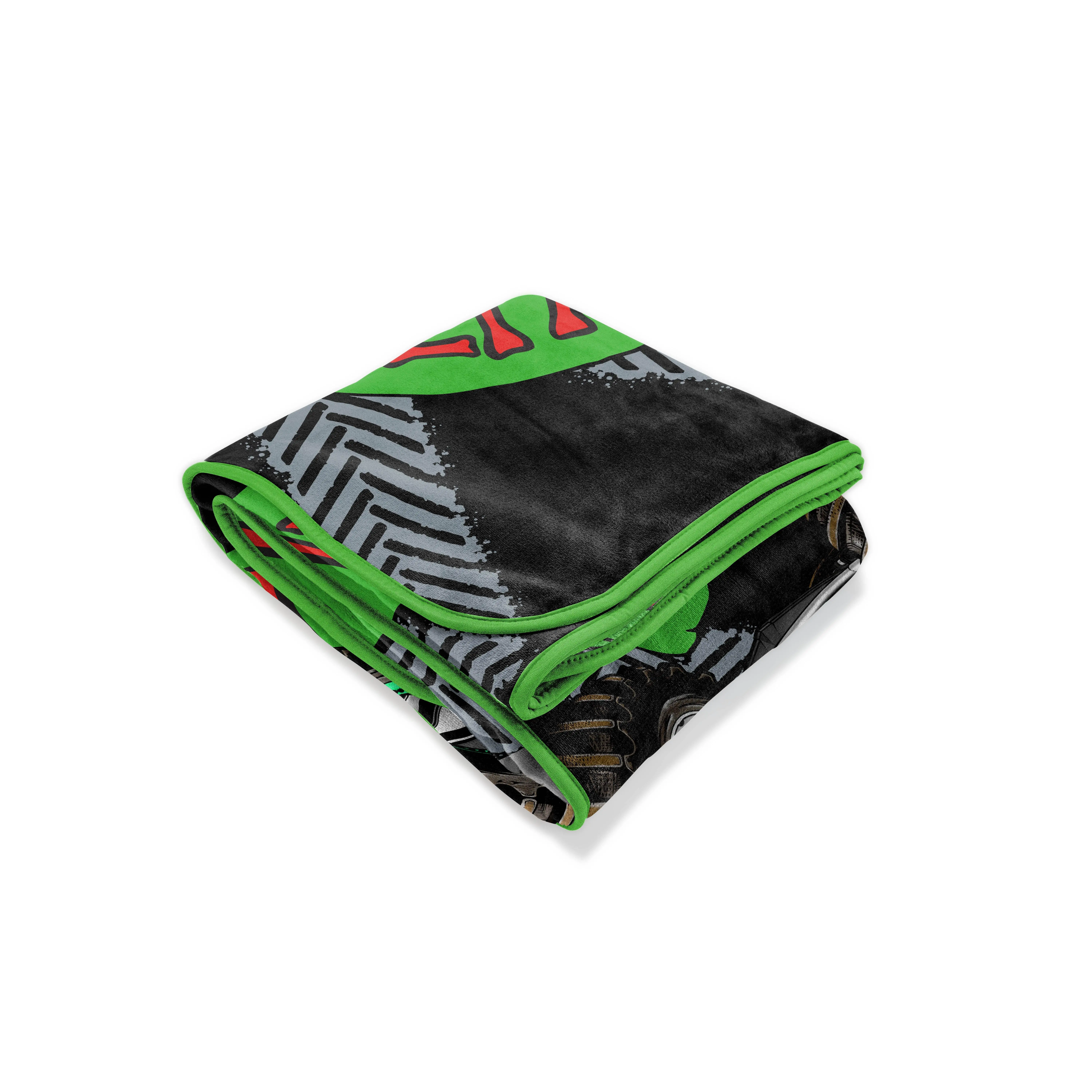 Calling all Monster truck fans: Add this Monster Jam travel blanket to your list of travel accessories must haves! It’s comfort, warmth, and coziness make it the perfect tag along on road trips, long flights, trips to grandma’s house, or any vacation. Kids will be excited to be accompanied by the coolest monster truck around, Grave Digger, on the road. Sure to bring all the comfort, sweet dreams, and endless smiles.