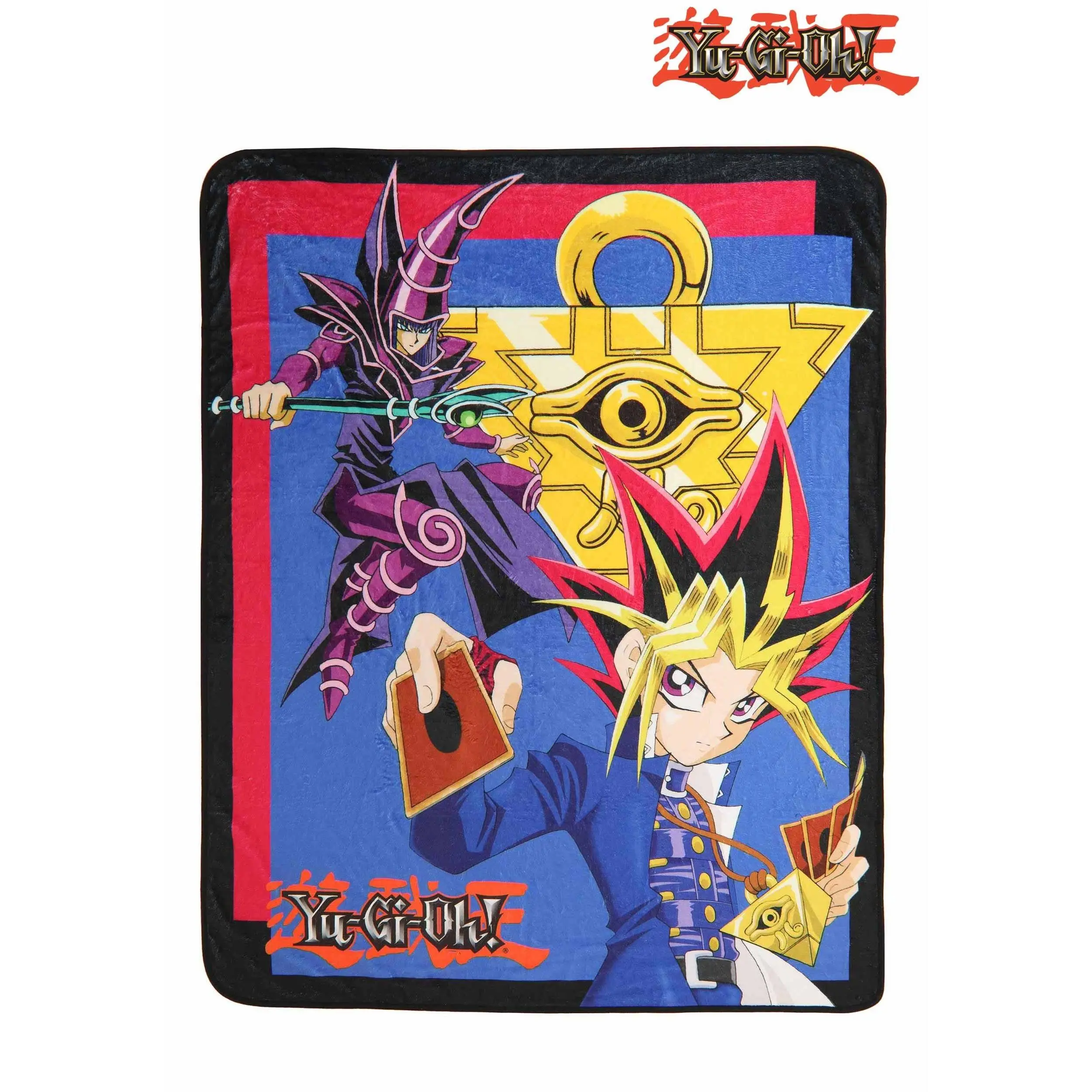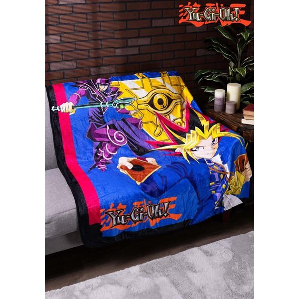 Naturally, Yugi's millennium puzzle is also on this comfy throw. Look closely and you'll see it twice! Bring this blanket home with you today and let the duel begin.