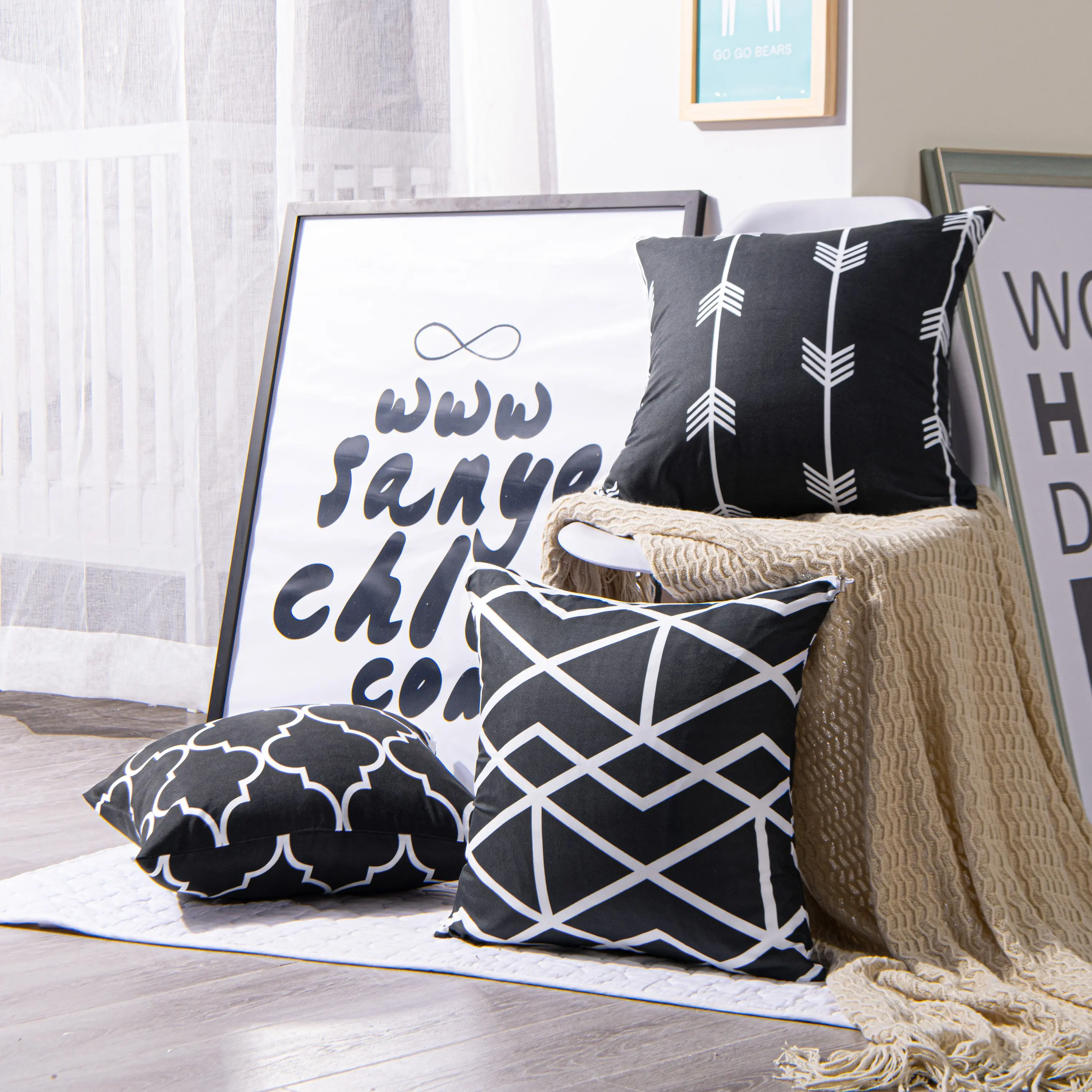 This cushion cover is made of high quality microfiber, with a thread count of up to 1800, light and soft texture, yet firmly structure. With black as the base and white as the line, it outlines complex and changeable geometric patterns, and use simple color matching to create an artistic abstract fashion atmosphere. The pattern is printed on both sides. This cushion cover is more wrinkle-resistant and more resistant to shrinkage than cotton fabrics. The meticulous stitching and exquisite workmanship reduce the loose thread and make it more durable.