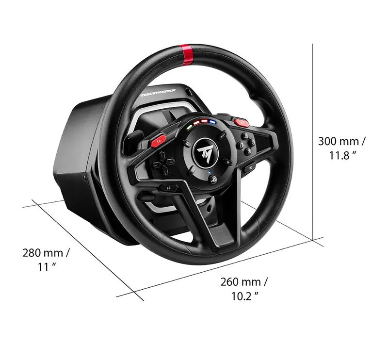 Ready to feel the rush of race day right in your living room? The Thrustmaster T128P Racing Wheel and Pedals bring next-level realism to your PlayStation or PC setup. With Force Feedback that’s 20% stronger than its predecessor, you’ll experience every twist, turn, and bump like you’re really on the track. The lightweight wheel rim feels natural in your hands, while the colorful LED strip keeps you in the zone by showing engine speed and gear shifts. Setup is a breeze thanks to the clamp-based attachment system that fits most desks securely. Plus, the magnetic two-pedal set features frictionless technology for smooth, precise control of acceleration and braking. Whether you’re a casual gamer or a serious sim racer, this ergonomic design keeps you comfortable during long sessions. Inside the box, you’ll find the racing wheel, pedals, and a handy manual to get you started. Ready to up your racing game? Grab the Thrustmaster T128P and hit the virtual road with confidence!