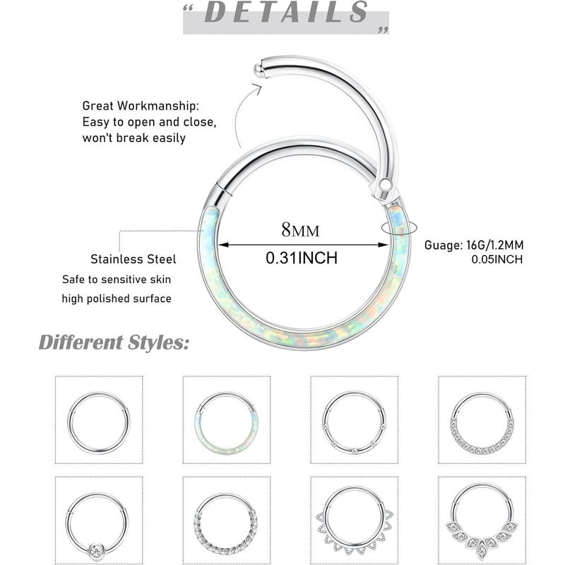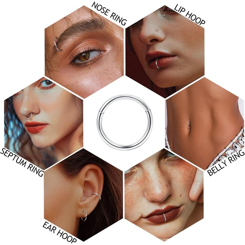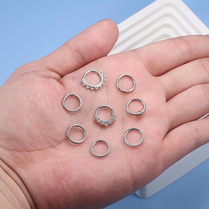 THUNARAZ 8 Pcs Shining Stainless Steel Septum Nose Rings for Women Men Hoop Rings 16G 18G Clicker Hinged Septum Cartilage Helix Conch Hoop Daith Piercing Jewelry 8mm 10mm Easy To Wear for Daily Outings Summer Vocation Christmas GiftTHUNARAZ 8 Pcs Shining Stainless Steel Septum Nose Rings for Women Men Hoop Rings 16G 18G Clicker Hinged Septum Cartilage Helix Conch Hoop Daith Piercing Jewelry 8mm 10mm Easy To Wear for Daily Outings Summer Vocation Christmas Gift