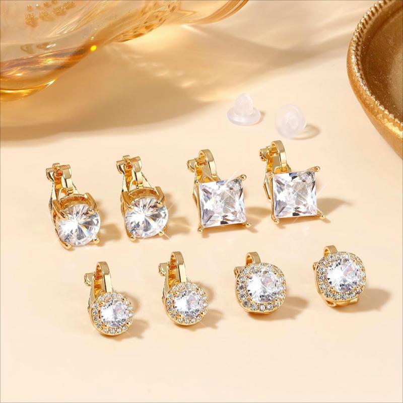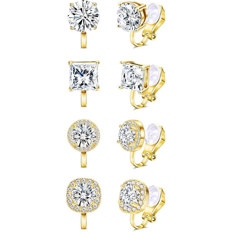THUNARAZ offers 4 pairs of dazzling non-pierced ear clips. These hypoallergenic cubic zirconia clip-on earrings are perfect for women and men. They are comfortable for weddings and dance competitions. The silvery and golden options make them versatile Goth accessories. Ideal for fashion lovers, these earrings are non-tarnish, ensuring long-lasting beauty.