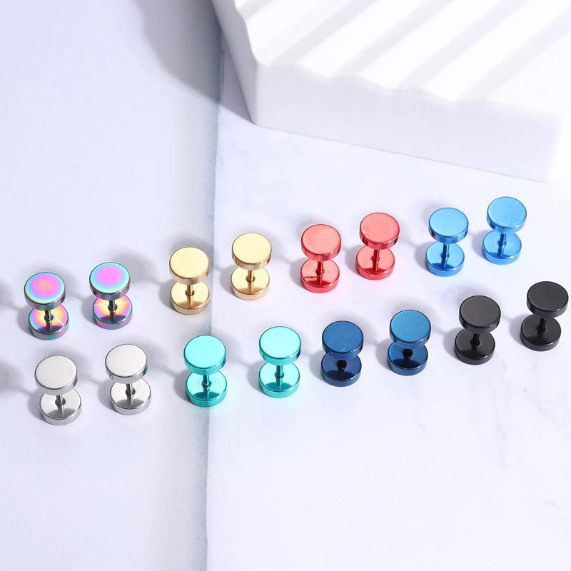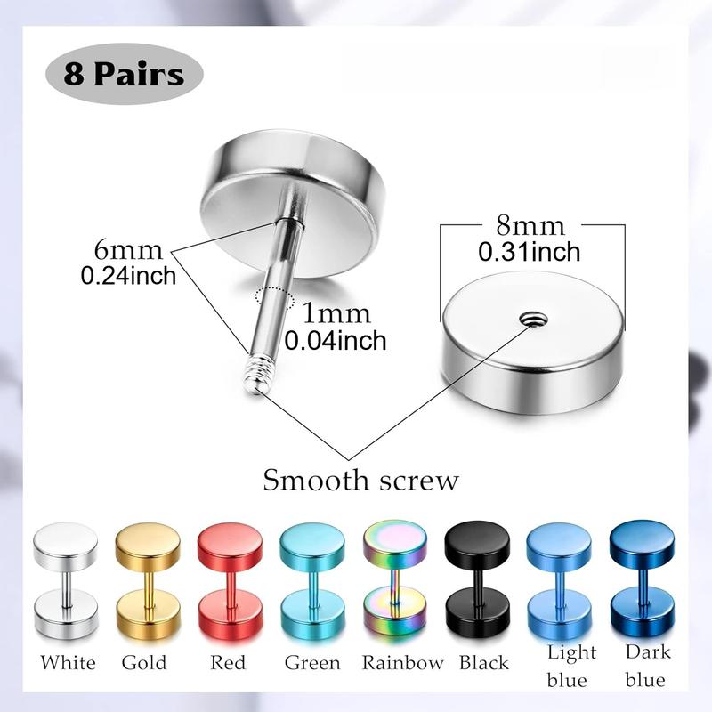 THUNARAZ 8 Pairs Unisex Rainbow Piercing Plugs Dot Earrings For Men Women Stainless Steel Jewelry Accessories Tunnel Punk Style Stud Earrings Fake Gauge Screwback Earrings 6/7/8mm Fashionable men's earrings non tarnish jewelry for Christmas Gift