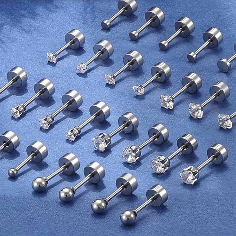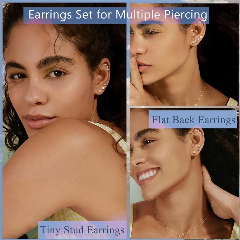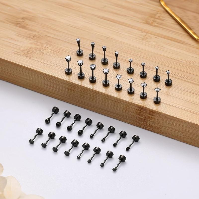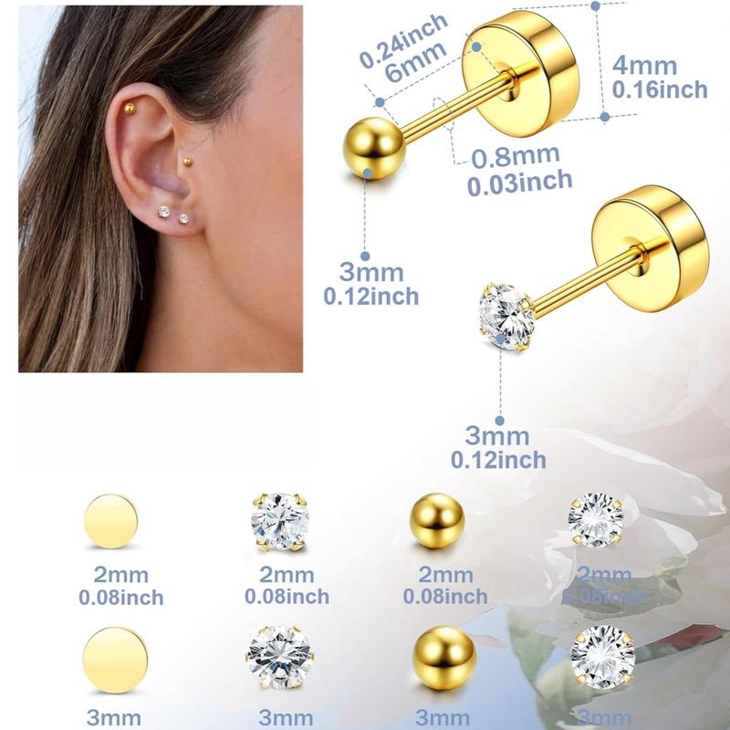 THUNARAZ offers 16 pairs of tiny ball CZ studs earrings for women and men. These earrings are made of surgical steel with a flat back. Available in 2mm and 3mm sizes, they are perfect for cartilage, tragus, helix, and daith piercings. Hypoallergenic and featuring cubic zirconia, these earrings are ideal for daily outings.