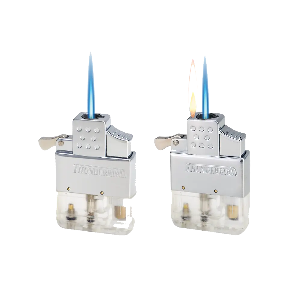 The Thunderbird insert I use gives a nice adjustable soft yellow flame for my pipe smoking. I will not use a torch flame as it could destroy the pipes and also the tobacco flavors. Lastly , the use of butane fuels and the no proof warranty gives a more than satisfactory outlook needed for purchase of these Vector products. My Zippos will get quite a work out. You must check out the Vector product line and seek your very own bliss!