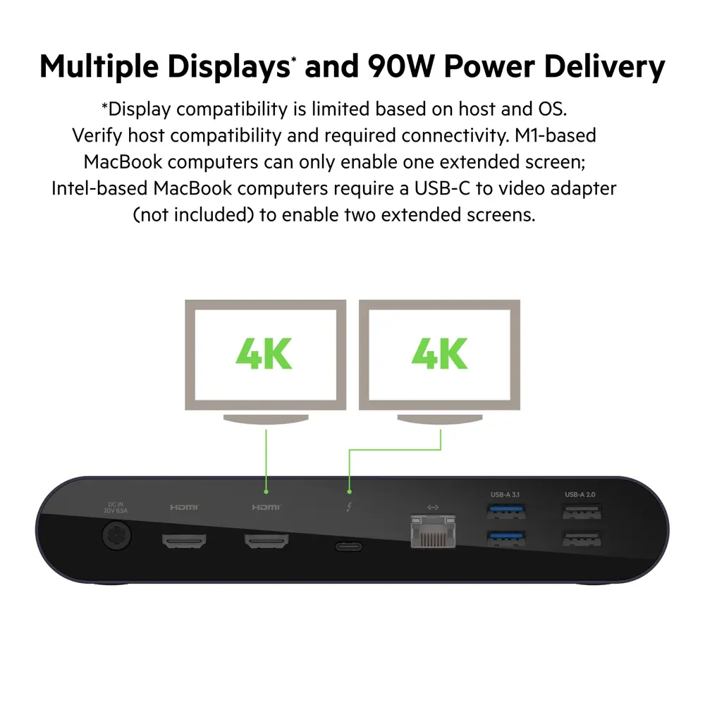 ·Triple display support available for compatible laptops. Video resolution varies and is dependent on laptop’s capabilities.