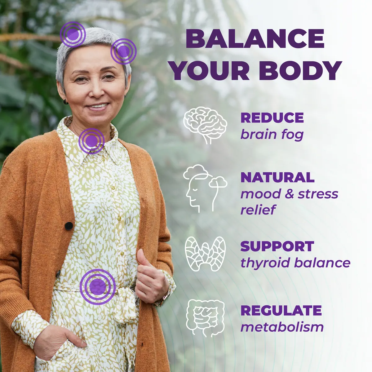·Natural Supplements: Includes herbal compounds like Bladderwrack, Myo-Inositol, and Selenium to promote thyroid health and help optimize thyroid hormones.