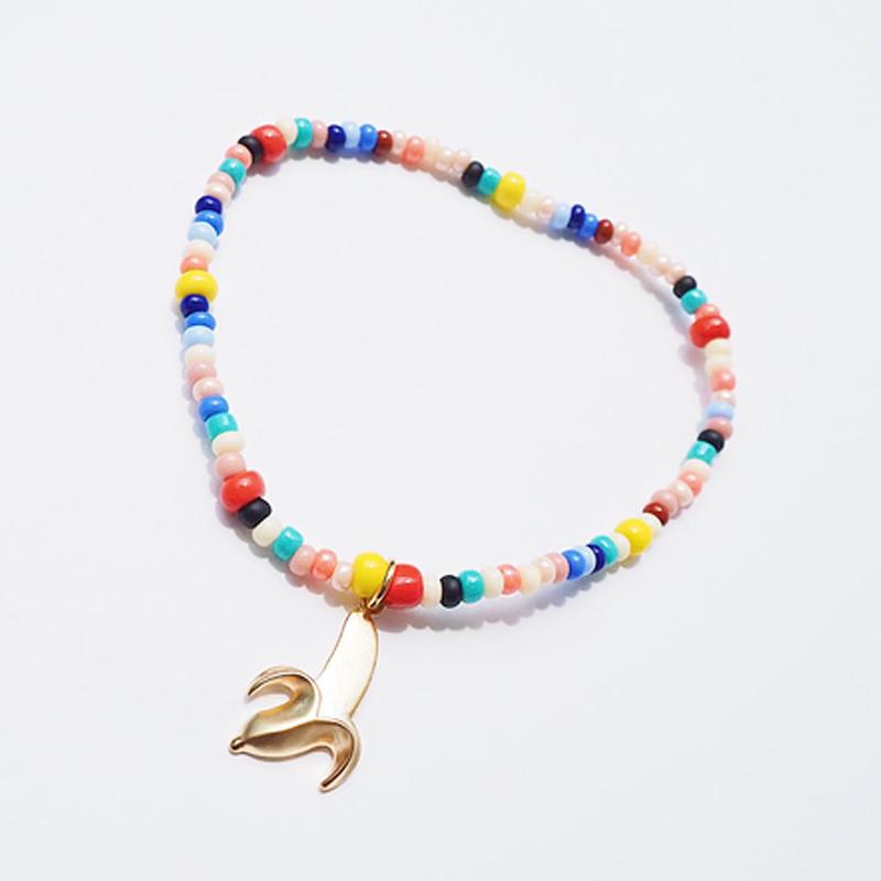 This jewelry is a fun and vibrant piece that features a gold banana and colorful beads from Haiti. The unique design is sure to catch the eye and add a pop of color to any outfit. The jewelry is made of glass beads and gold finished brass, which provide a shiny and durable finish that can withstand wear and tear. The 3.5'' size of the jewelry makes it a versatile piece that can be worn with a variety of outfits and for different occasions.