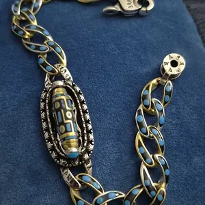 ·Material & Details: The bracelet is crafted with turquoise stones and Dzi beads. The six-syllable mantra adds a spiritual touch. It is a versatile piece for meditation and daily use. 🌟