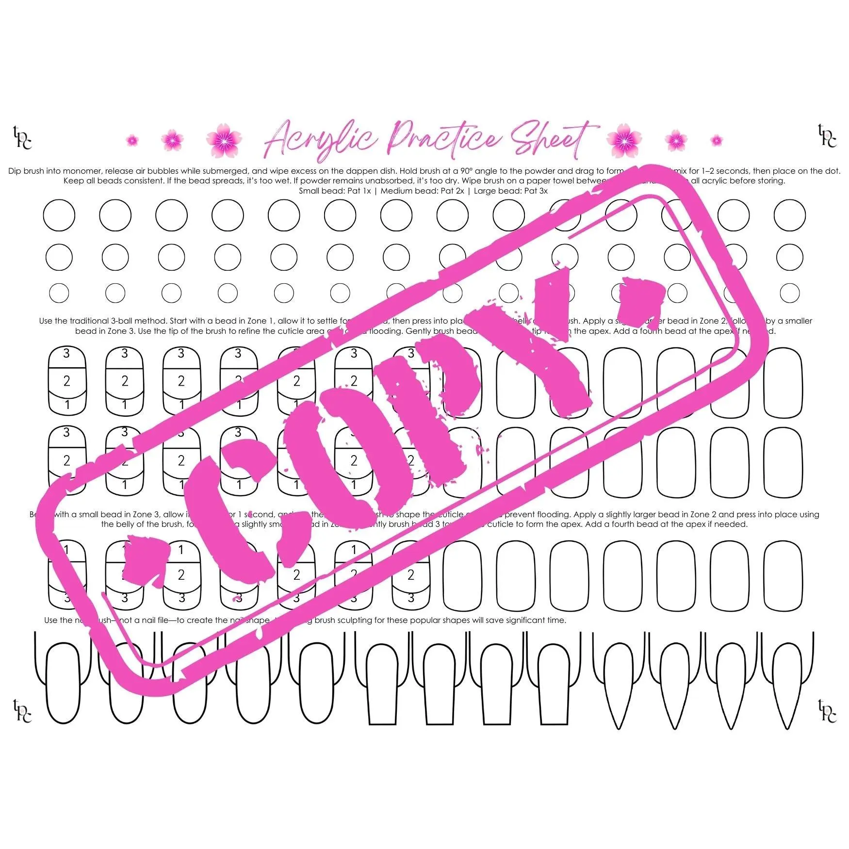 Β·Laminated Acrylic Practice Sheet β designed to help you master proper bead ratio and application technique with confidence. This reusable guide is perfect for hands-on practice, helping you visually understand consistency, control, and placement before working on real nails.