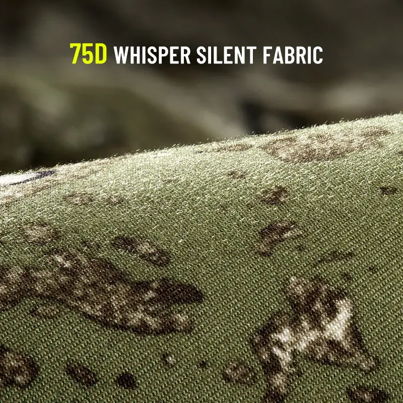 75D brushed, water-resistant TPU fabric keeps it silent and light. Three camo options for ultimate concealment.