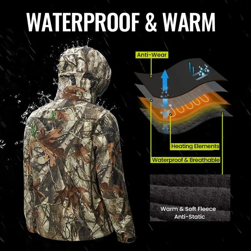 · Comfortable & Safe-TIDEWE Water & wind resistant breathable exterior polyester fabric with anti-static fleece liner traps the heat and provides a soft and comfortable fit. TIDEWE heated jacket applies the battery with UL, FCC, RoHS, CE certification. Once the temperature is beyond 131 ℉, the battery will turn off, keeping you warm and safe at the same time.