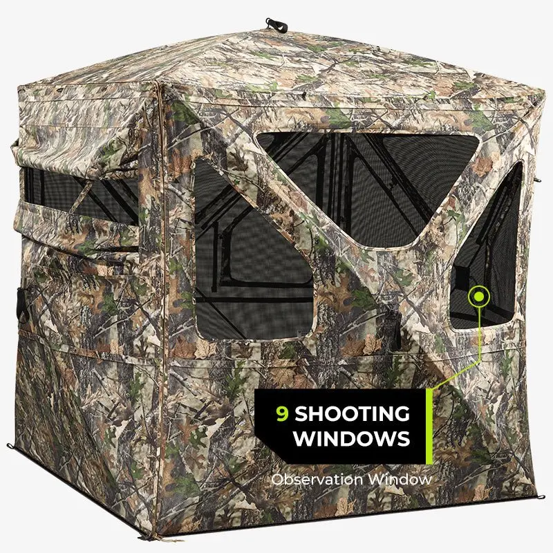 Built with tough metal hubs, reinforced corners, and resilient strapping, these hunting blinds are designed to withstand adverse weather conditions such as rain, snow, and strong winds. The durable construction ensures longevity and reliability, making it a long-lasting choice for your hunting needs.