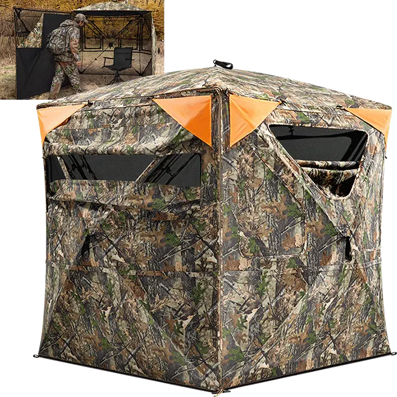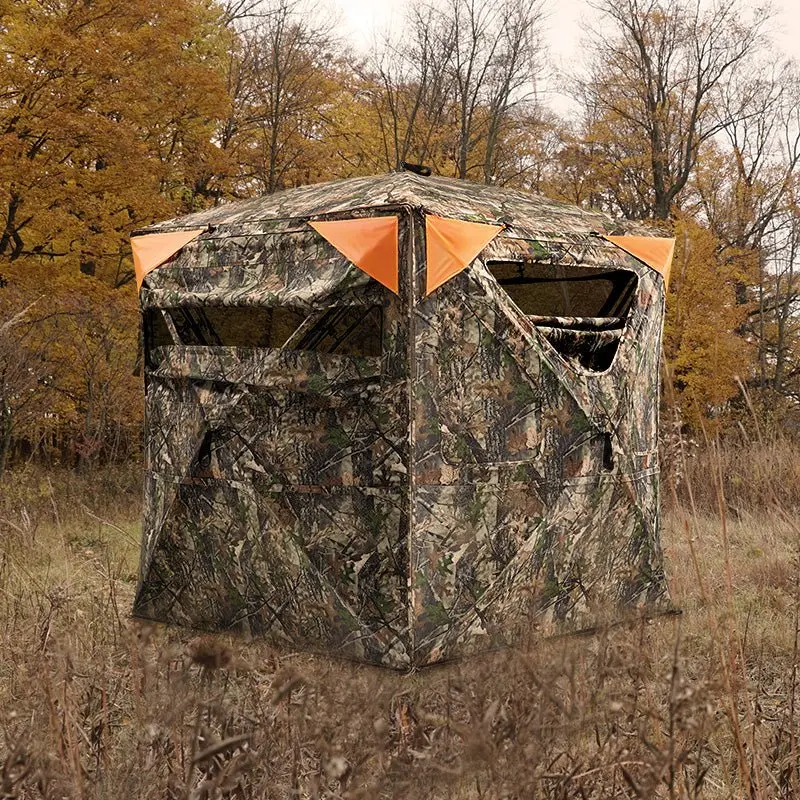 Each side of the tent is equipped with over 160 square inches of removable blaze orange safety panels, serving as a warning to others and making your hunt safer when needed. The 360° see-through design provides a comprehensive view of your surroundings, enhancing your hunting experience.