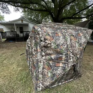 Literally everything he hoped it’d be!!! It’s so big on the inside and sturdy. There are plenty of brush hooks to cover it, plus nice thick pull loops you can easily use to strap between trees for a secure hold if you decide to leave it at your hunting spot. Highly recommend to every hunter!