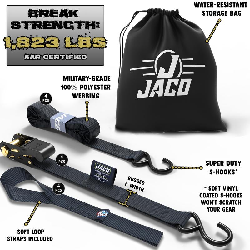 ·Rugged, weather-proof tiedowns adjustable up to 15 ft & scientifically engineered with our proprietary PolySilk webbing, providing an ultra soft feel with superior strength & guaranteed strap break strength rated to 1,823 lbs at our AAR certified cargo control lab.
