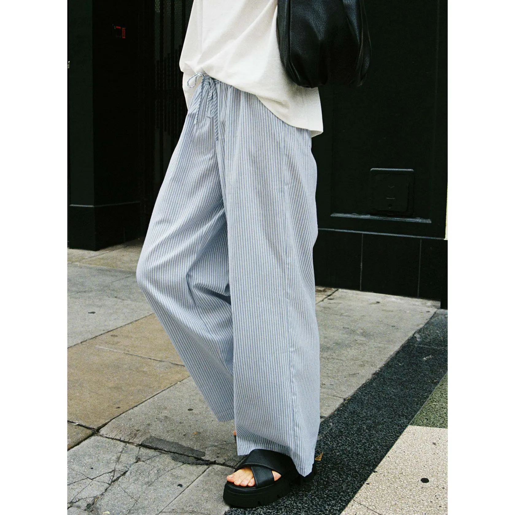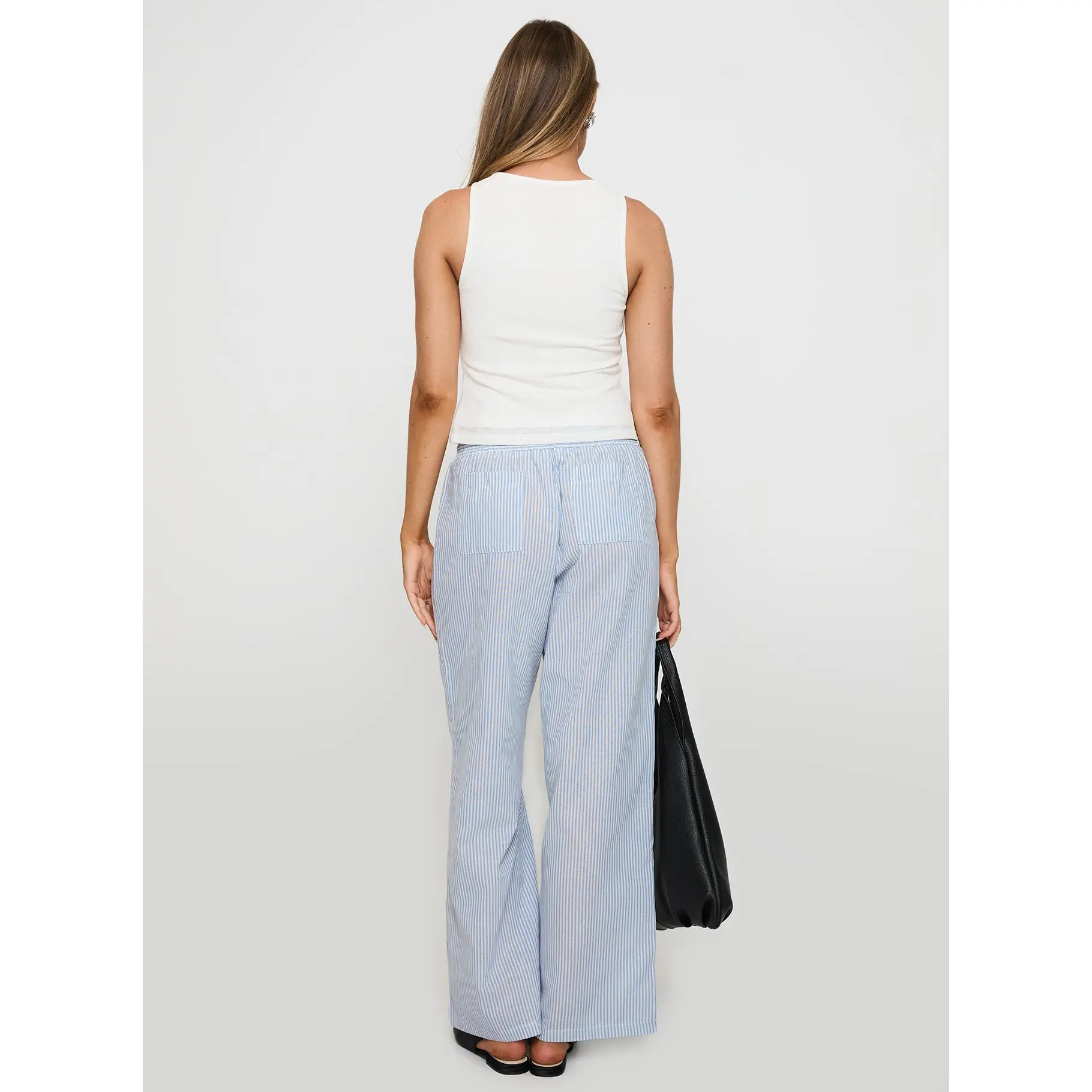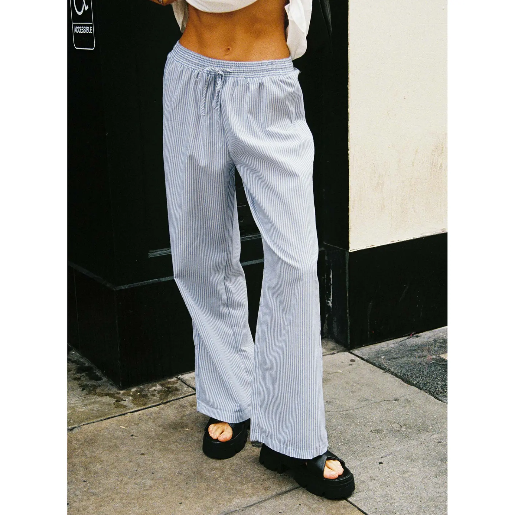 ·Stripe print, elasticated waistband, twin back pockets, straight leg