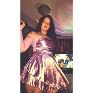 This dress is so pretty! It fits me so well. The only issue i have is getting it to stay on the girls. But other then that, it's a perfect date night dress and perfect if you wanna dr3ss up like an elf or fairy 💜💜