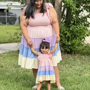 5. Mom & Me Tiered Color Blocked Pastel Dress