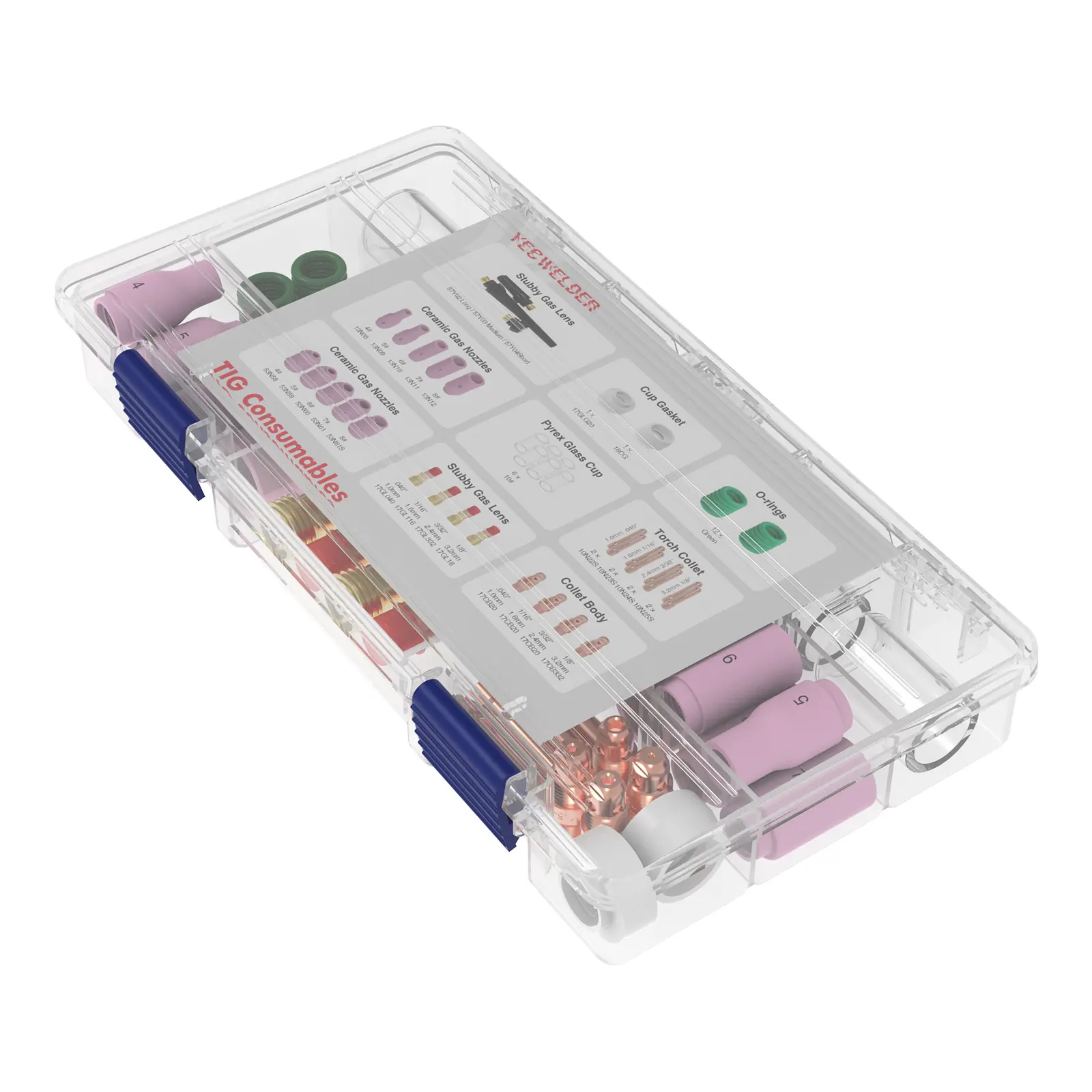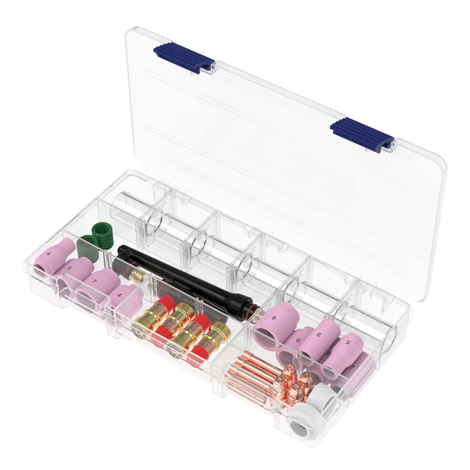·Comprehensive Kit for TIG Welding: This kit includes multiple cups, collets, back caps, diffusers, O-rings, and insulators. Designed for WP-17/18/26 series air-cooled TIG torches, it offers region-free, easy-to-use application for various TIG welding tasks.