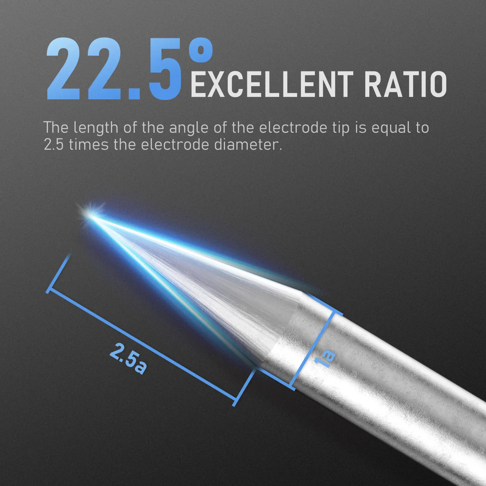 ·Featuring an excellent 2.5:1 tip length-to-diameter ratio, this meticulously engineered angle (specifically 22.5°) ensures superior arc focus and stability.