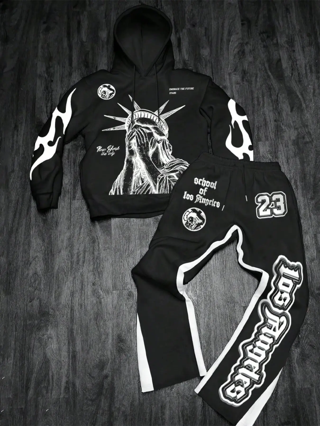 Tiktok Trending American City-Themed Streetwear Set, Hoodie & Pants with Statue of Liberty and La Graphic, Perfect for Edgy #lolahoodie #pacsunhoodies #amazonholidayoutfits #unisexsweatsuits #newyearseveoutfitwithjeans #urbanapparel #activewearset #streetwearoutfit #hoodieoutfit #streetwearfinds