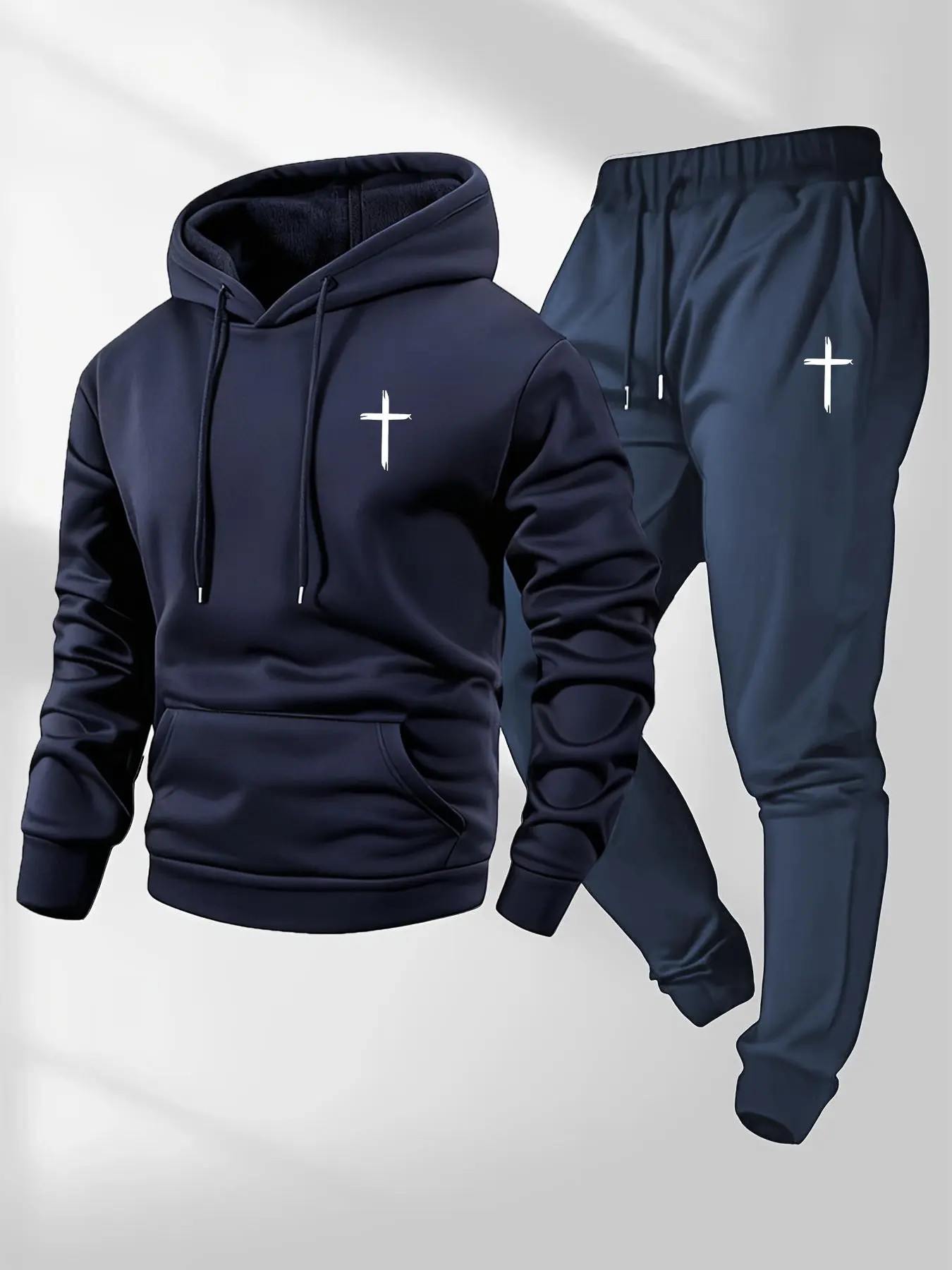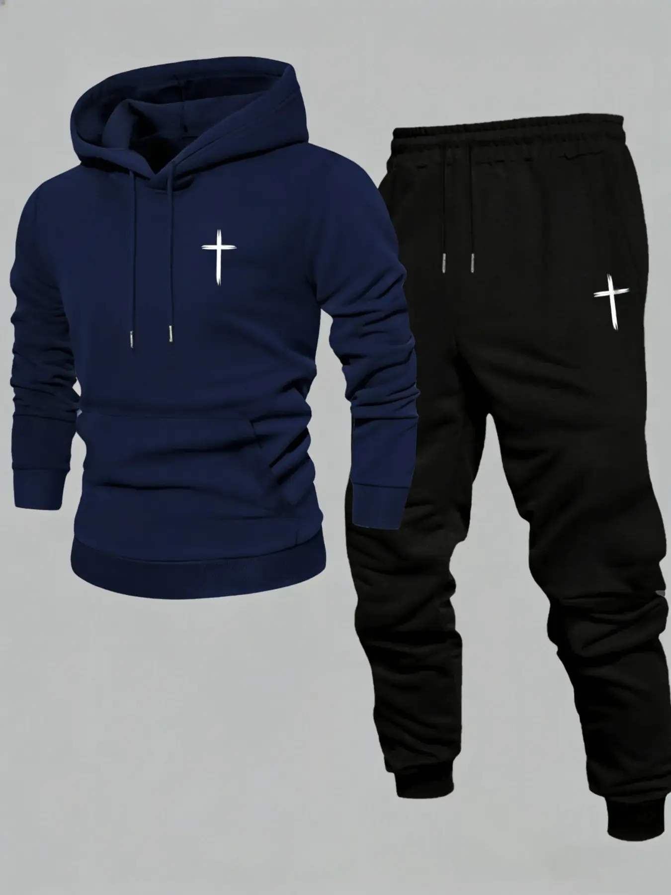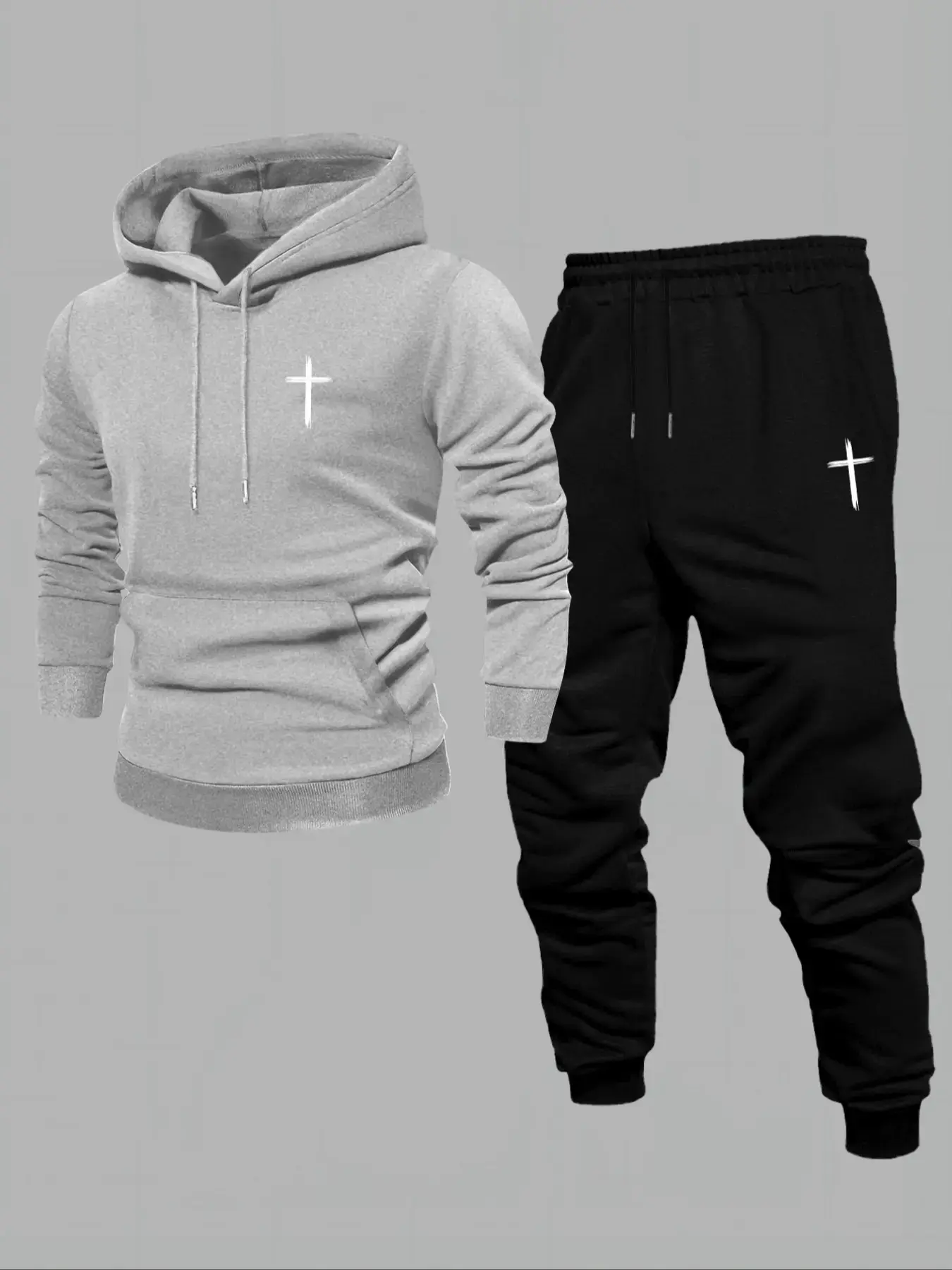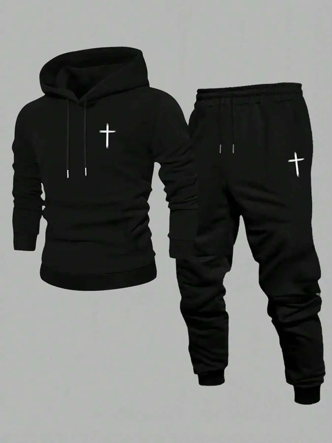 5. TikTok Trending Christian Streetwear Set, Black Long Fitted Hoodie & Pants with Cross Graphic Print, Perfect for Black Friday & Cyber Monday Deals, Ideal for Faith - Based Outfits During TikTok Shop Black Friday Sales and Christmas Gift Ideas