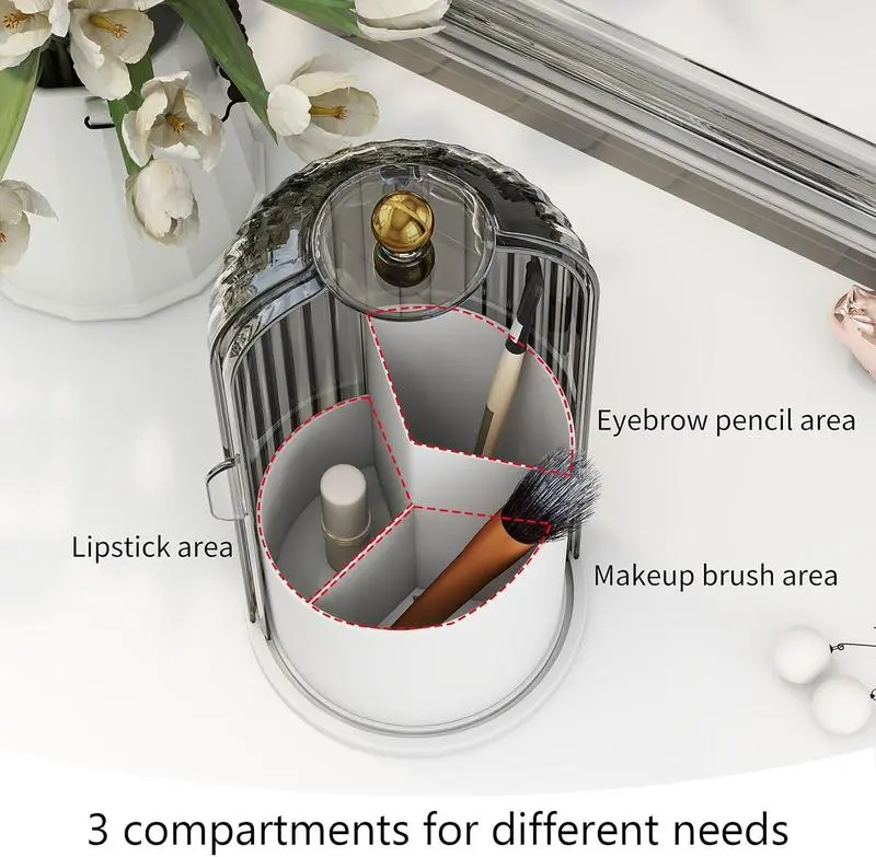 Versatile Multi-Purpose Functionality: More than just a toothbrush holder, this organizer accommodates razors, combs, and jewelry. With three divided compartments, it meets different needs for a variety of makeup tools, ensuring everything from lipsticks to eyeliners are kept clean and organized.