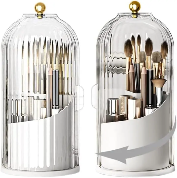 Concealed Brush Holder Makeup Organizer: This sleek and stylish makeup brush holder is designed to keep your beauty essentials organized and neatly stored, featuring a sliding lid that maintains a clean appearance while protecting your brushes and cosmetics.