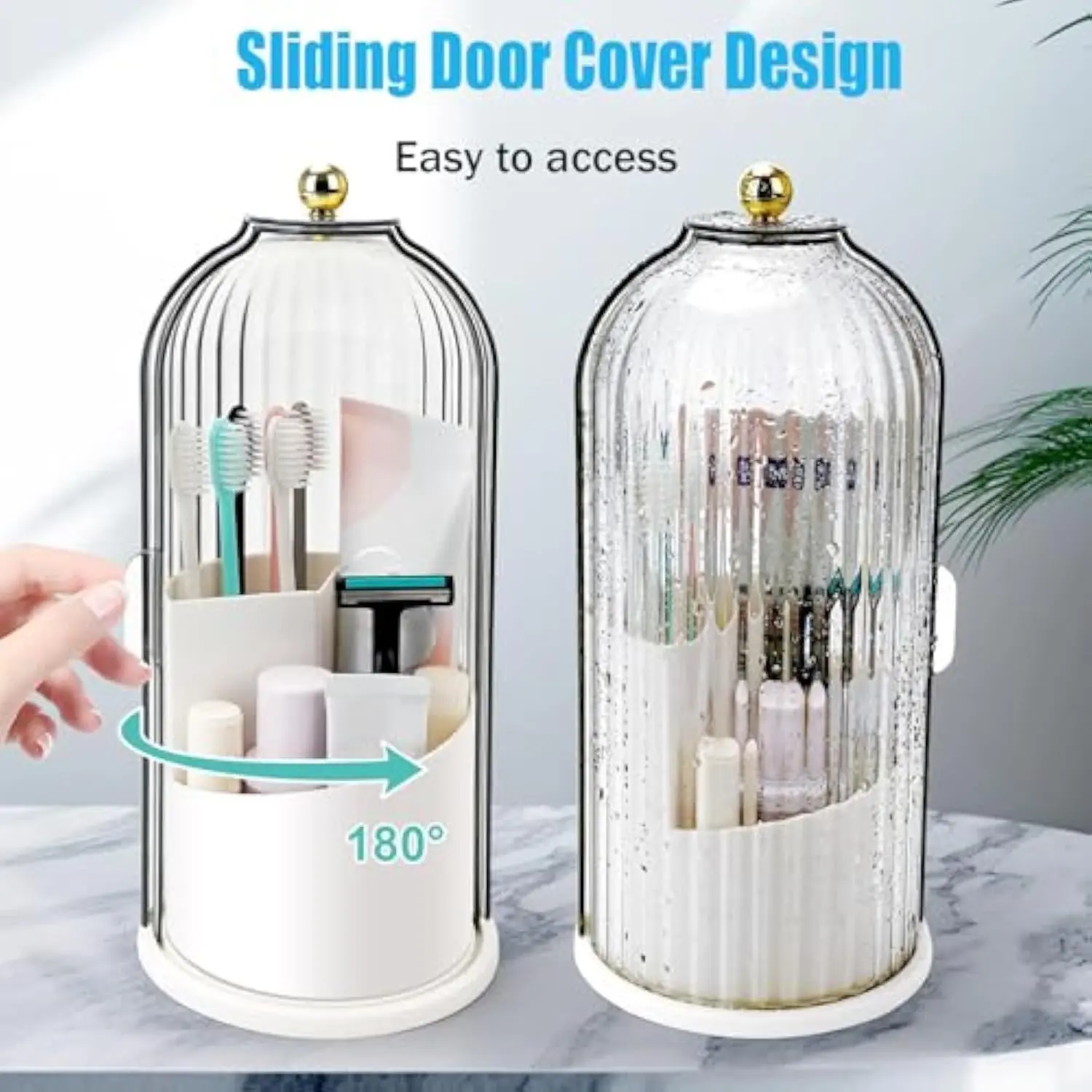360-Degree Rotating Bathroom Countertop Organizer: Enjoy the convenience of a 360-degree rotating design, allowing you easy access to your toothbrushes, toothpaste, and makeup brushes from any angle, making it ideal for compact bathroom spaces.