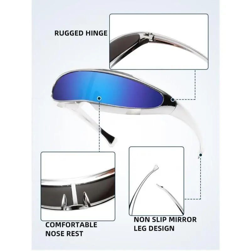 ·Metallic Wrap Around: The metallic wrap-around design makes these glasses ideal for raves and festivals. They are a trendy addition to your 2026 aesthetic streetwear. 🎉