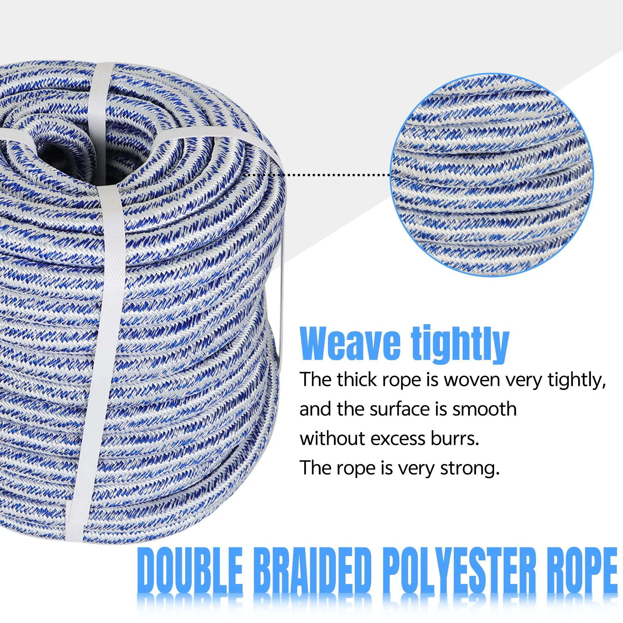 This 1/2 inch 16-strand braided polyester rope is built for versatility and reliability. With its high tensile strength and durable weather-resistant construction, it is ideal for a variety of indoor and outdoor uses, including: