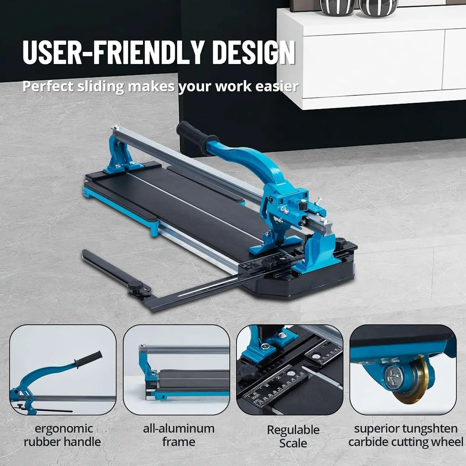 · Enhanced Stability: Equipped with anti-skid feet and a precision scale, this tile cutter ensures consistent cutting performance and stability. The movable support table enhances flexibility for diverse cutting needs.