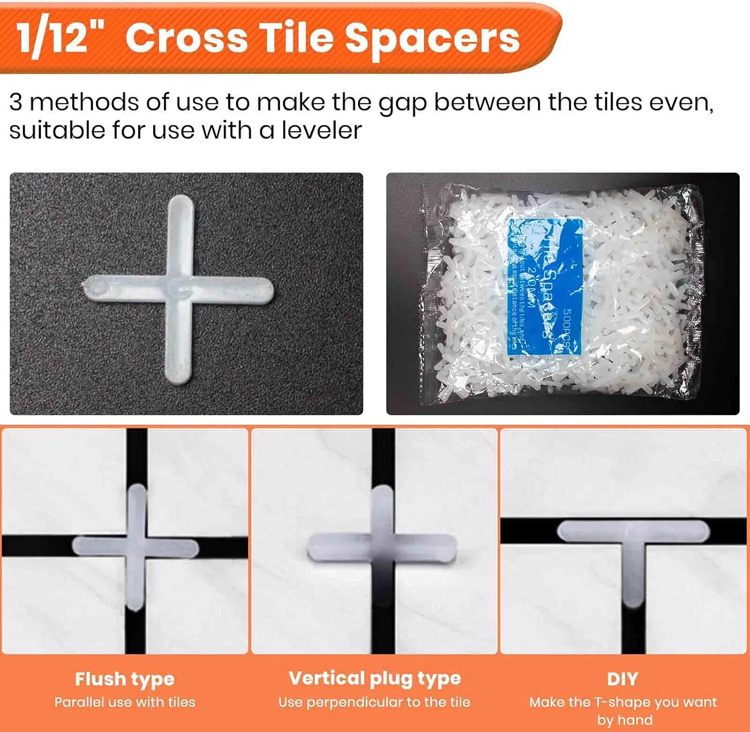 【Easy to Use & Efficient】 tile leveling system kit can be easily installed. You can use the 1/12"(2mm) cross-shaped tile spacer in the set to keep the gap,then insert the 1/16"(1.5mm)T-pin along the gap of the tile, after rotating 90 degrees, use the wrench to rotate the black cover to keep the tiles at the same level, wait 4-6 hours, take out the tile leveler before the cement is dry. Our tile leveler can tiles from moving while curing,which improves tile installation speed.