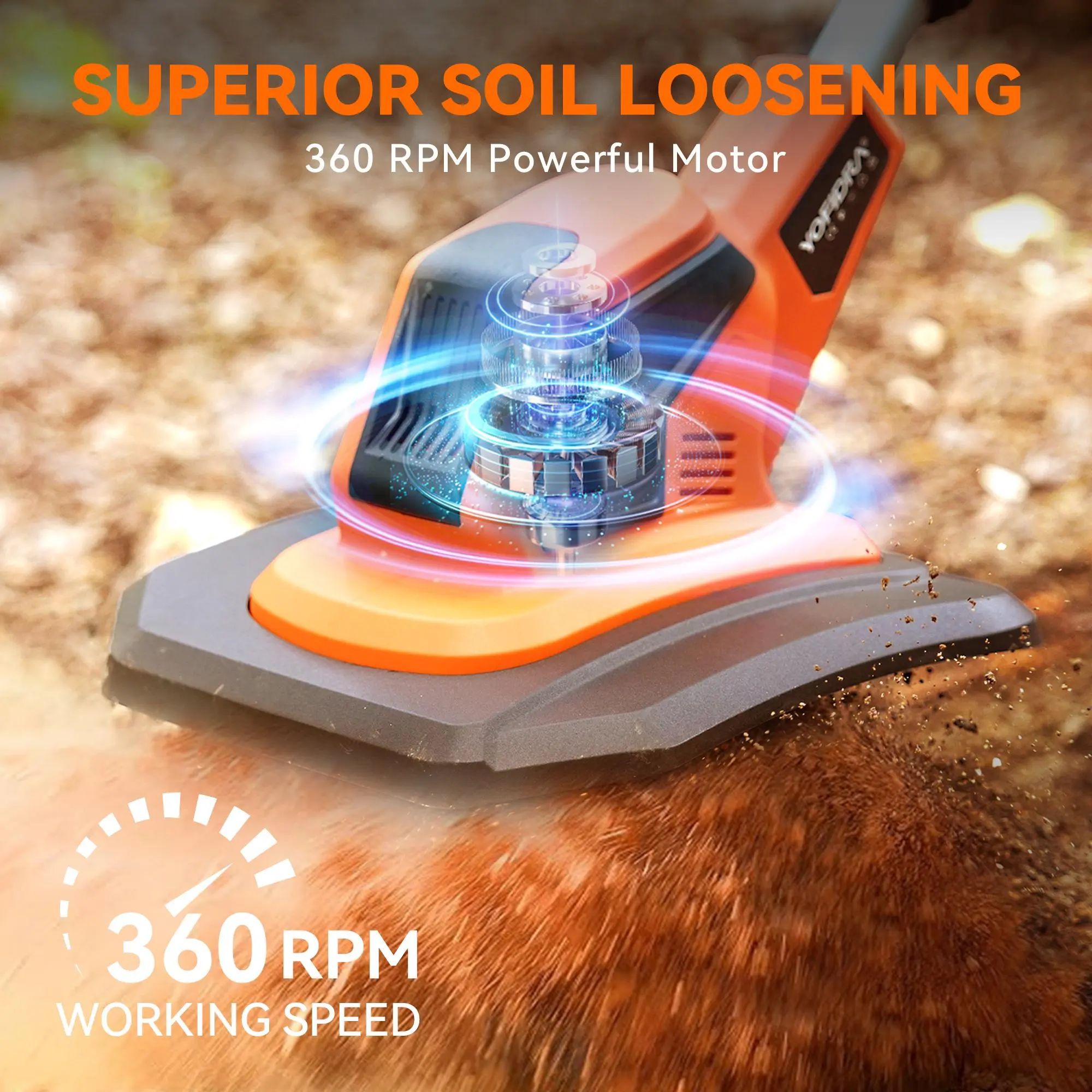 5. Yofidra 21V Cordless Tiller Cultivator 360RPM Electric Garden Tool with Ergonomic Handle & Adjustable Handle for Lawn Gardening Soil Cultivation lawn equipment Blades Cutting Portable Power