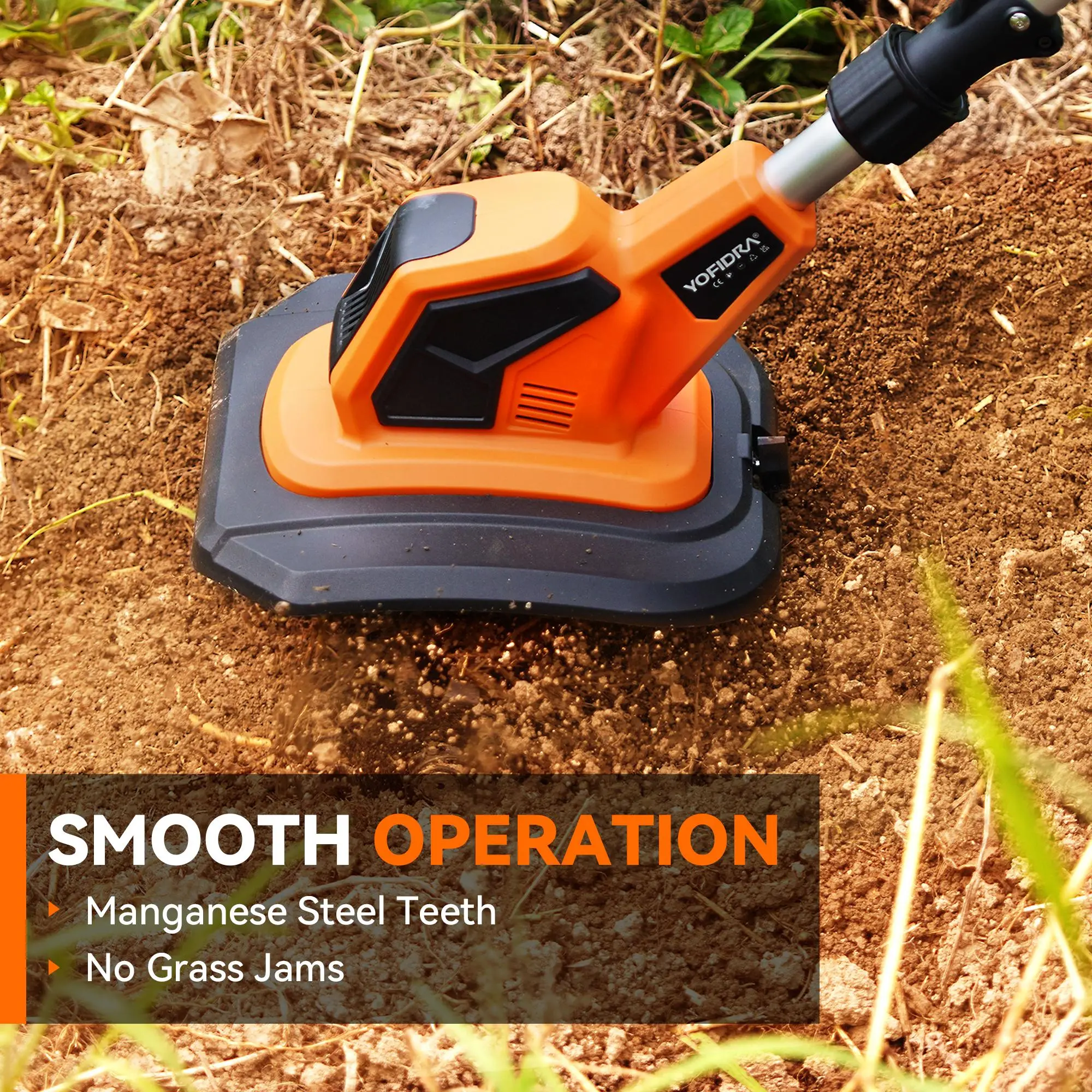 ·Cordless Freedom: Powered by a rechargeable 2 * 2.0 AH battery, this cordless tiller gives you unlimited mobility in your garden. No more hassle with power cords - just grab and go.