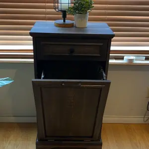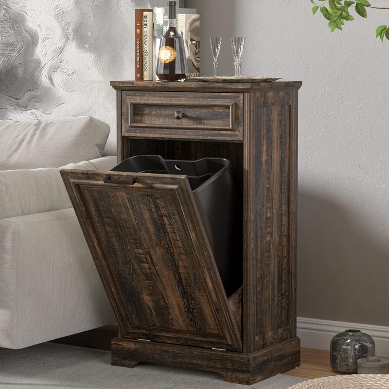 ·【Durable and Stable】Spurgehom trash can cabinet is designed and constructed with rust-resistant hinges/knobs, quality drawer slides, and laundry baskets. Sturdy construction ensures it's durable enough to hold a 35 lb. Note: Fits plastic trash cans 13 gallons or less.